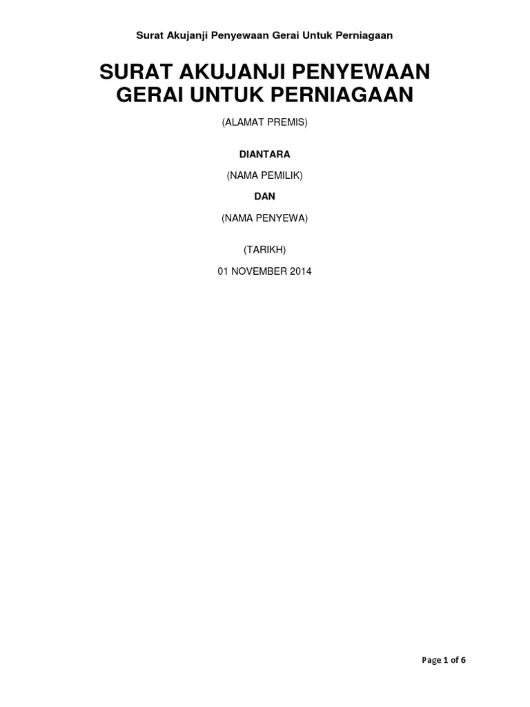 Surat Akujanji Penyewaan Gerai Untuk Perniagaan Pdf